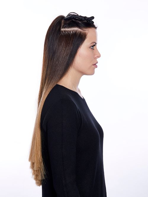 4.Da der obere Hinterkopf frei von zusätzlichen Strähnen bleibt, lassen sich Zöpfe und Hochsteckfrisuren umsetzen, ohne die Bondings sichtbar zu machen.