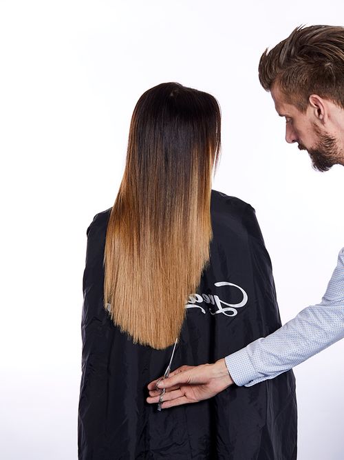 5.Für den finalen Schliff werden die Übergänge zwischen Eigenhaar und Extensions angeglichen und in Form gebracht.
