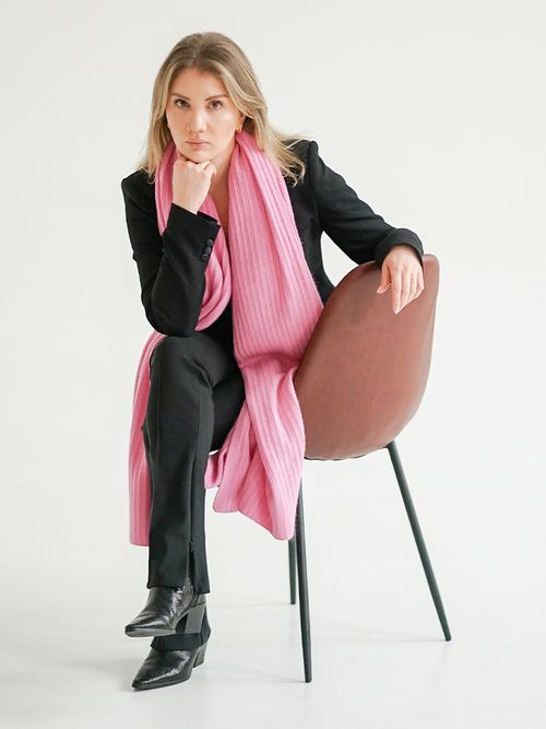 Alexandra beschreibt ihren Schal selbst so: „Er gibt mir ein Gefühl von Wärme und Geborgenheit.“ Wir finden, das liegt nicht nur am weichen, wärmenden Material.
